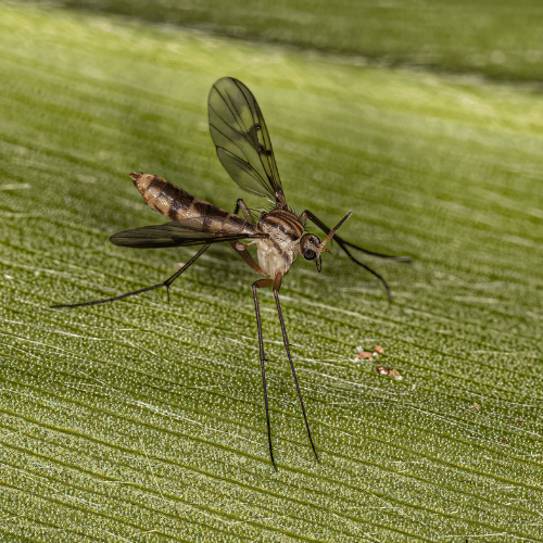 Dark-Winged Fungus Gnats: Commonly found in houseplants, these small flies can become a nuisance indoors. They breed in moist soil and can damage plant roots. Our solutions target their breeding sites to keep your indoor plants healthy and free from gnats.