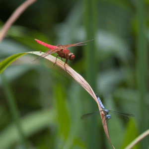 Dragonflies are diurnal and thrive in sunny environments. They prefer habitats close to water, as they need aquatic environments for breeding. Adults spend much of their time patrolling territories, hunting flying insects, or basking in the sun to maintain body temperature. Dragonflies are carnivorous and use their sharp mandibles to capture and eat mosquitoes, flies, and other small insects mid-flight. They are most active during the warmer months and are particularly beneficial in reducing mosquito populations. Dragonfly behavior is influenced by environmental factors such as temperature, light, and the availability of prey.
