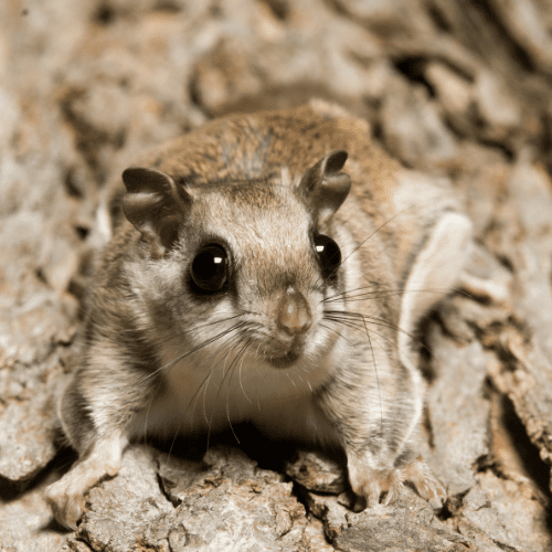 Flying squirrels belong to the family Sciuridae and are divided into two primary species in North America: the northern flying squirrel (Glaucomys sabrinus) and the southern flying squirrel (Glaucomys volans). They are nocturnal and rely on their excellent vision to navigate and forage at night. Flying squirrels primarily feed on nuts, seeds, fruits, insects, and fungi. They breed twice a year, with litters typically consisting of 2 to 4 young. These squirrels do not truly fly but glide, using their patagium to cover distances of up to 150 feet between trees. They are social animals and often nest in communal groups to keep warm during winter.