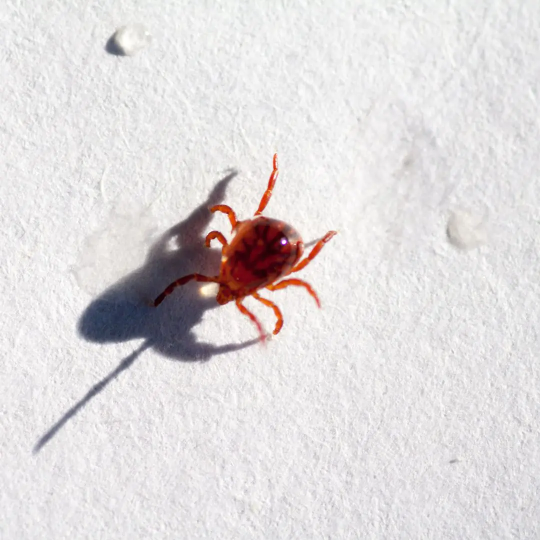 Chiggers, or red mites, are nearly invisible to the naked eye but leave a mark with their itchy bites. Found in overgrown, grassy, and moist areas, chiggers attach to hosts to feed on skin cells. The irritation from their bites can last for weeks.